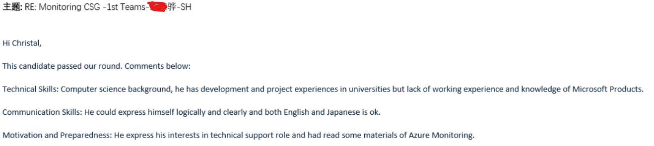 下面是一些面试结果和反馈,M365线的HR每次只告诉我结果,其他几个都有: